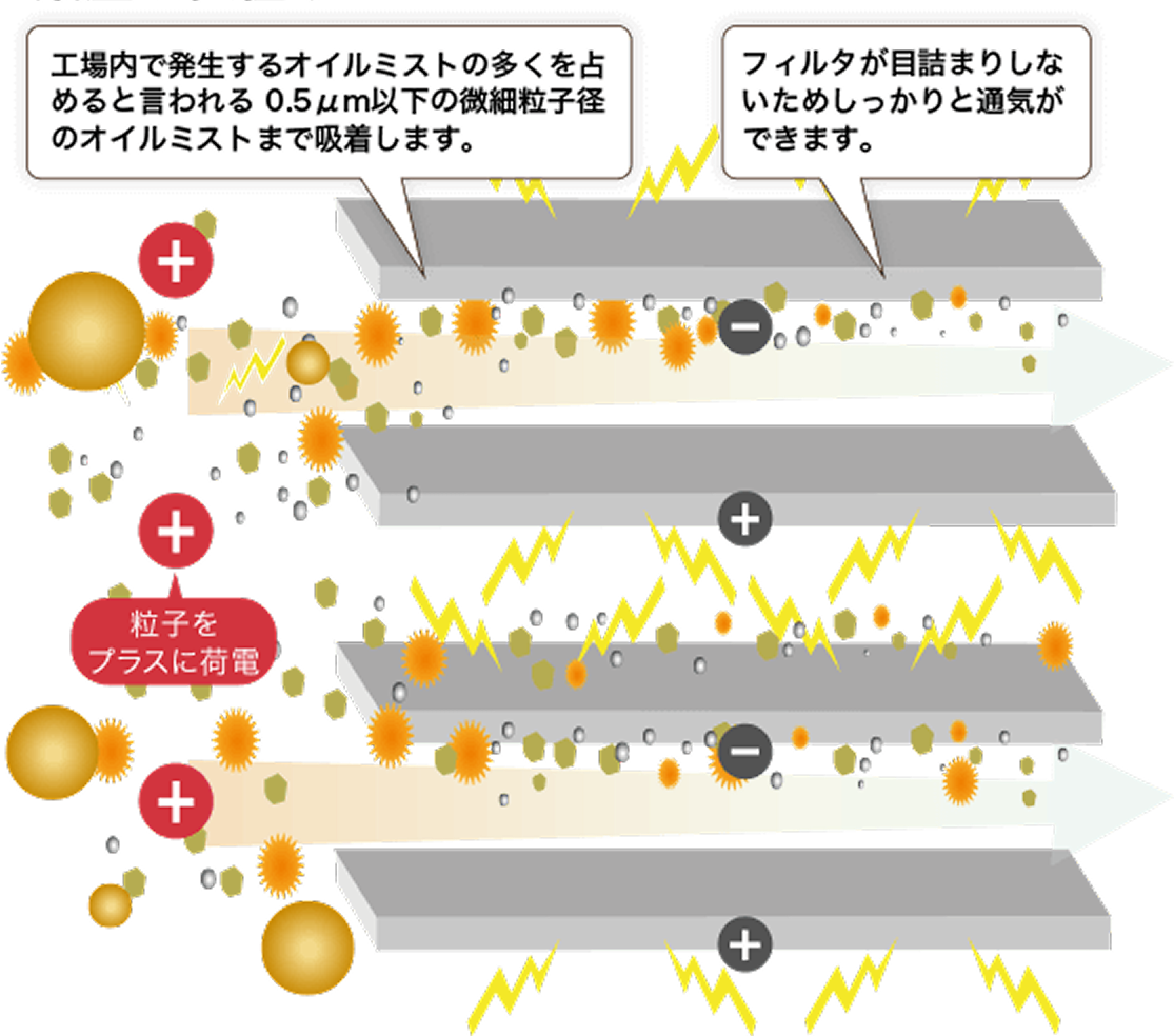 メインフィルタ | 2段荷電式電気集塵機 | |